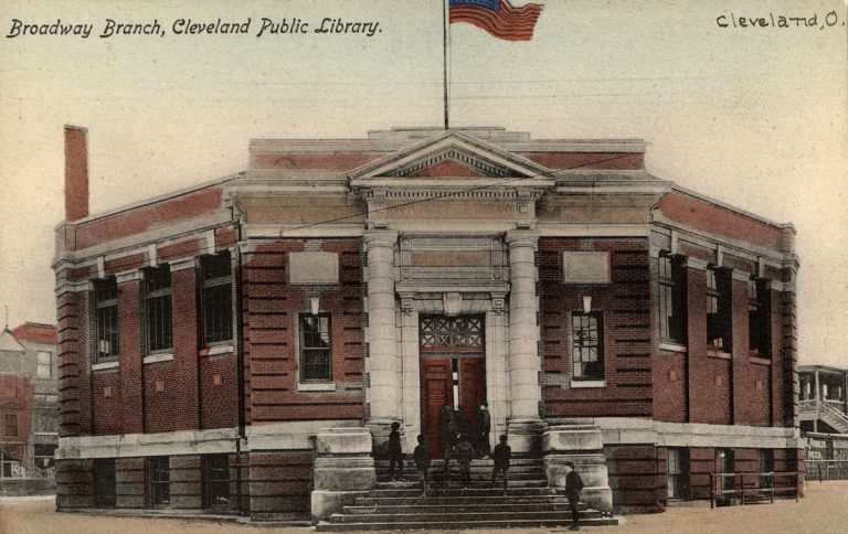 Cleveland's growing steel industry drew many immigrants at the turn of the 20th centuryThe Broadway Avenue district's literacy rate of 98.5% was greater than that of most other Americans. To meet strong community demand, the Broadway Branch Library branch was established. With the assistance of grants from Andrew Carnegie, fifteen branch libraries were built in Cleveland during the period from 1904 to 1920.