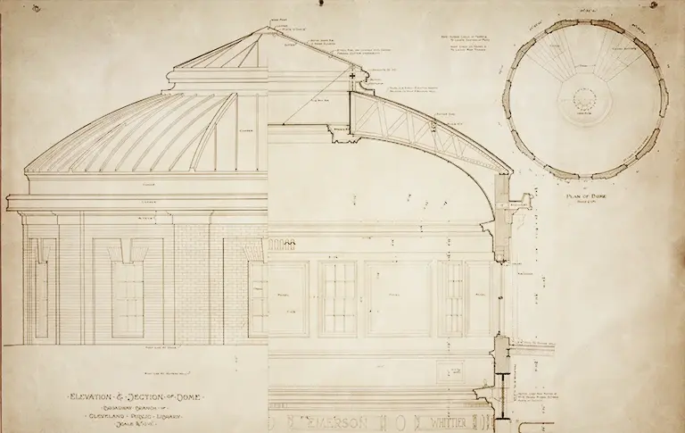 Designs begin ON ONE OF THE FIRST CARNEGIE LIBRARIES IN CLEVELAND.